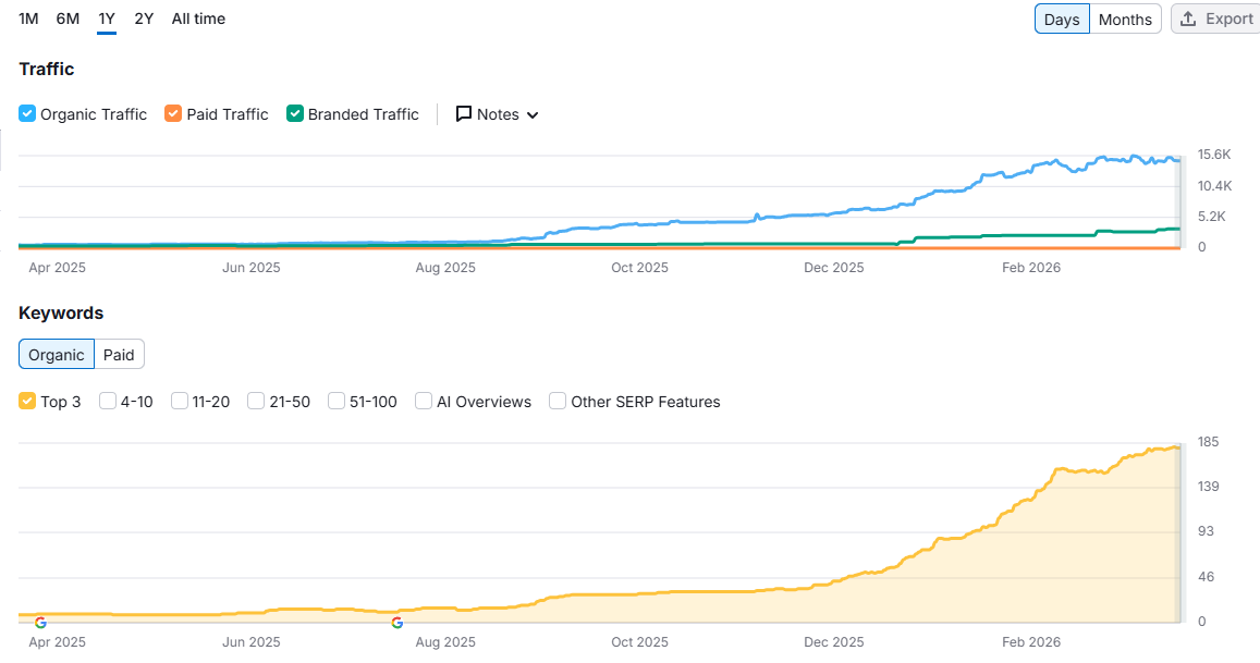 0 → 15.6KMonthly organic traffic